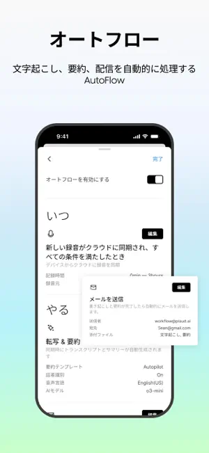 - AutoFlow:文字起こし、要約、配信を設定ルールで自動化