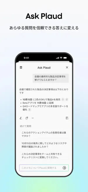 - Ask Plaud:参照ベースの回答を取得し、洞察を生成し、メモとして保存