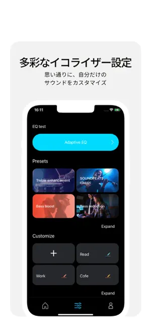- EQなんとかして 前のアプリではストレスなく使えていて、音質も問題なかったです。こちらに誘導されたら、まず前のアプリのIDが引き継がれず新規ID登録が必要なところで大きく減点、さらにEQの操作性が悪いことに加えて(プリセットEQをベースにカスタマイズ、微調整できない)、プリセットEQはびっくりするほど音像が不自然に。イヤホン自体はとてもよいものなので、せっかくの音質も台無しになり残念です。