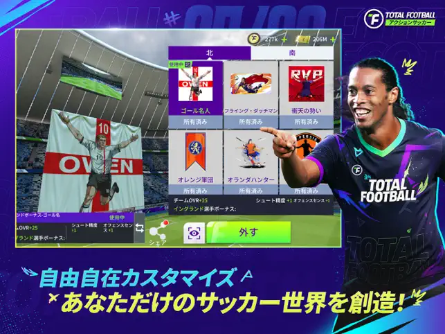 お気に入りのスタジアム、チームバッジ、ユニフォーム、TIFOなどをカスタムし、自分だけのオリジナルチームを作り、ゲームを盛り上げましょう!