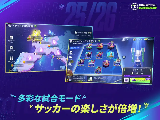 FIFPRO公式ライセンス取得により、4,000人以上の選手が実名登場し、大量のリアルデータと連携しています。今後、更なるクラブとのコラボレーションにも期待できます!