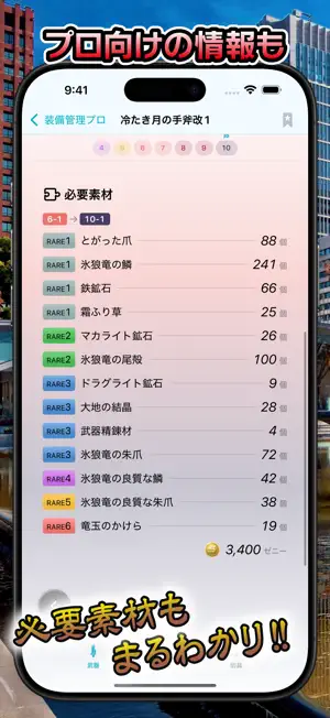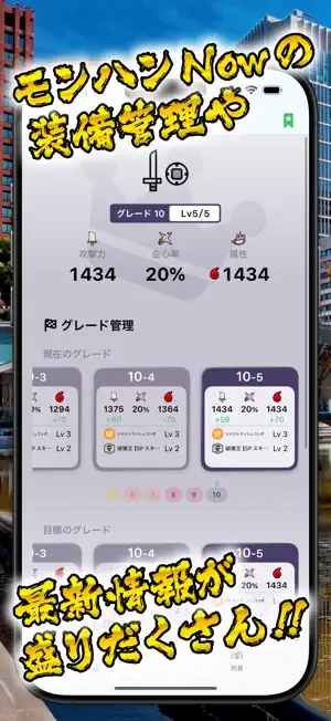○モンスターハンター Now の装備グレードレベルを管理できる唯一*の iOS アプリ