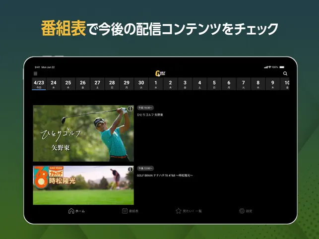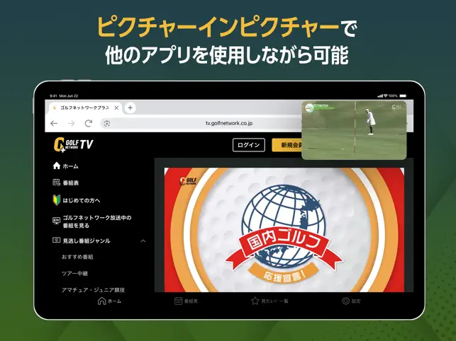 日本唯一のゴルフ専門チャンネル「ゴルフネットワーク」の番組が視聴できるアプリ。