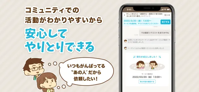 同じコミュニティの仲間たちと仕事のマッチングができるアプリです。