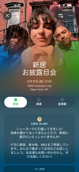 • 参加依頼には誰でも返信することができます。参加依頼の作成にはiCloud+のサブスクリプションが必要です。