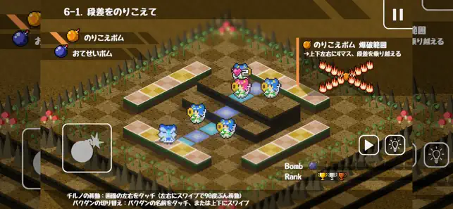 バクダンは「何かにぶつかるまで進む」「3マス先で爆発する」「ダメージを与えず、敵を吹き飛ばす」などの色々な個性がありま‏す‎。