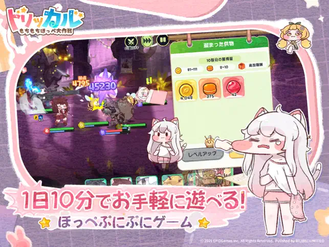 - 念願の日本版! 韓国版も少しプレイしましたが日本版も出たのでプレイしてます。小さいデフォルメキャラの子達が沢山登場しており、ホーム画面だけで無くストーリー中等いつでもどこでも撫でたりほっぺたを引っ張ったりする事が出来ます。戦闘部分については配られた手札で装備やキャラをリアルタイムで強化していくのが中々面白いですね(若干運に左右されるのは好みが別れるかも)。毎日やる事が多いゲームなので盆栽の様にちまちま育てたりキャラを愛でれる人にはとってもオススメです。非常に惜しいと思う点は可愛い韓国ボイスが殆ど収録されていない事かなと思いますので今後に期待です。