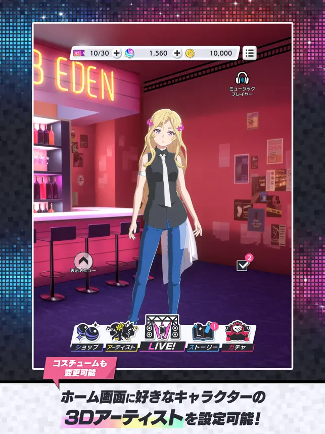 ・リセマラをする場合総合で1分ほどなので比較的にしやすい。最初のチュートリアルの楽曲が終わると10連ガチャが引けるので良心的で‏す‎。