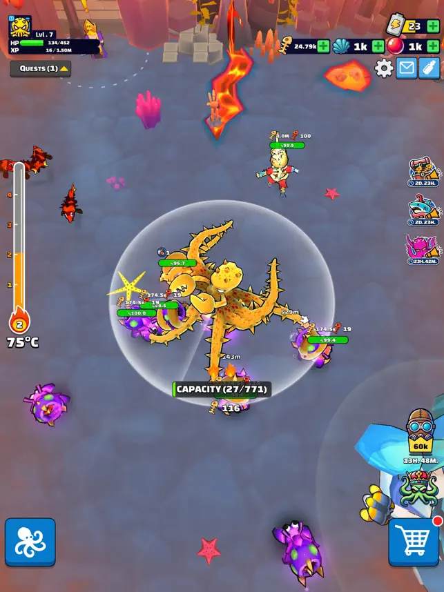Grow your octopus from a small creature to a colossal predator in this thrilling marine adventure!