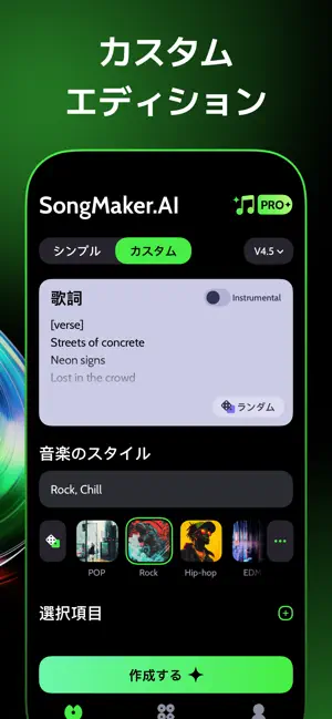 独自のAI曲を作成: 作成プロセスを開始し、AIがすべてを処理します: