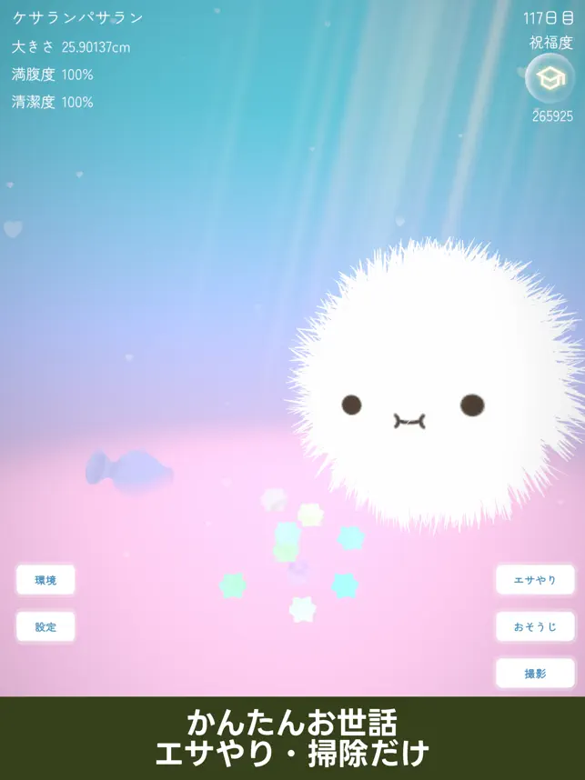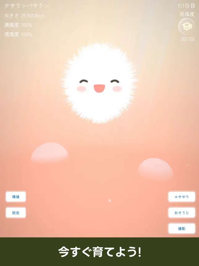 ケサランパサラン育成は、ふわふわでかわいいケサランパサランをお世話して楽しめるシンプルな育成ゲームです。