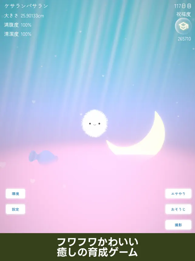 かわいく漂う姿を眺めて癒されたり、住処をデコレーションしたり、好きな名前をつけて特別な存在に育てたり。まるで小さなペットを飼っているような気分を味わえます。