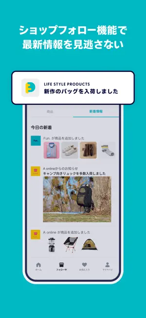 □ お気に入りのショップをフォローしてお買い物を楽しめる!