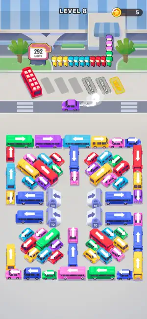 No way to play without ads After the first few levels, there is no way to release the buses without adding more slots, each of which either cost in game currency, which you will need to purchase, or have to get the slots by watching ads. Since there is no way to complete a level without watching at least one ad to get another slot, unless you play, you are stuck with endless ads with max a minute of gameplay in between.