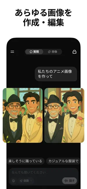 Grokは、xAIが開発したAI搭載アシスタントで、最大限に真実性が高く、役立ち、好奇心旺盛であるよう設計されています。あらゆる質問に答え、魅力的な画像を生成し、写真をアップロードして世界をより深く理解しましょう。Grokとともに、宇宙はあなたの手の中に!