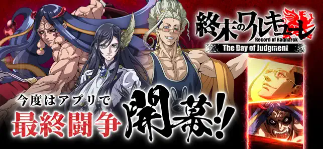 コミックスの累計発行部数1,800万部突破の大人気アニメ『終末のワルキューレ』が、ついにスマホゲームアプリで登場!神と人類の壮絶なバトルを今すぐ体感しよう!