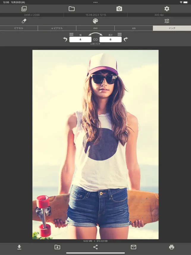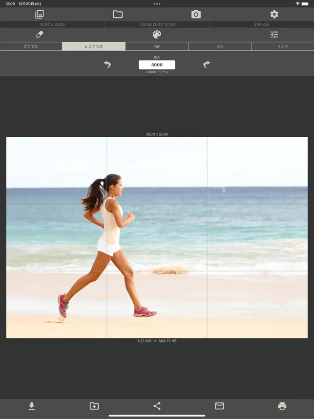 このアプリでは、画像をご希望のサイズに (制限あり) すばやく簡単に変更できます。