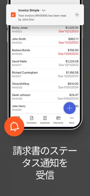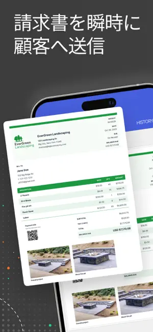 ・モバイルから直接送信できる、プロフェッショナルな仕上がりの請求書
