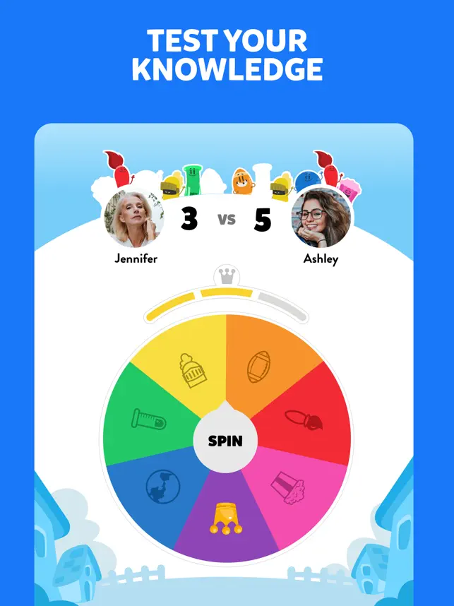 私たちの相棒のルーレット、ウィリー君が‏、‎6つの異なるカテゴリから問題を選択してあなたに出題しま‏す‎。6つの冠を最初にゲットした人が勝ちで‏す‎。再戦も可能で‏す‎!