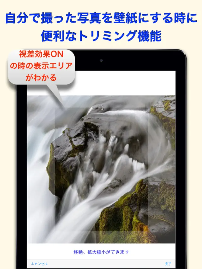 読み込んだ画像の縦横比が上記以外だった場合は、トリミング画面が開いて、欲しい領域を切り取ることができます。