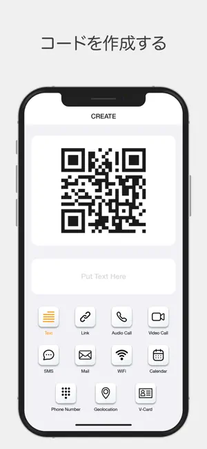 •任意のタイプのQRコードを作成します:テキスト、URL、電話番号、Vカード、SMS、電子メール、Wi-Fiホットスポット、カレンダー、ジオロケーションなど。