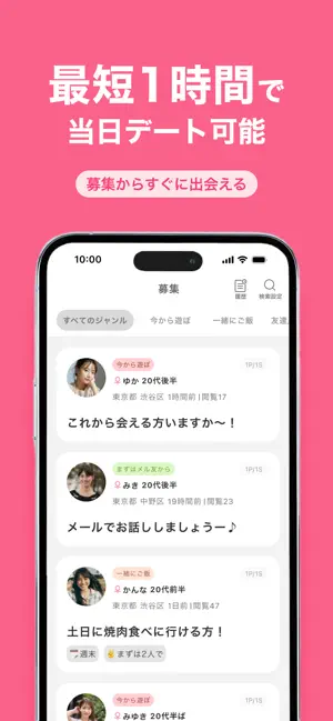 ・募集…やりたいことや遊びたい地域などを指定して、気の合うお相手を募集することができます。