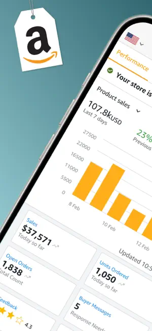 「Amazon出品」を使って出先からAmazonのビジネスを管理売上分析、注文の出荷、販売する商品の検索、出品、在庫、返品の管理、さらに購入者からの質問への迅速な対応が可能です。お手元のモバイルデバイスでプロ品質の商品画像を撮影・編集し、出品情報を作成できます。