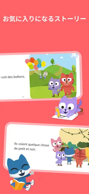 ・日常フランス語の習得 レッスンでは日常生活で使える単語や表現を学ぶので、バイリンガルの能力を伸ばすスタートを切ることができます。 ・スピーキング力の早期向上 インタラクティブなスピーキングのアクティビティを通して、単語やフレーズを自分から発することを促します。語学学習のスタートが早ければ早いほど、早く上達する可能性が高くなります。 ・音声の多様さ 登場するキャラクターによって、声のトーンや表現、アクセントが異なるため、子どもたちはさまざまな話者の発音の微妙な違いを聞き取ることができます。 ・専門家によるデザイン すべてのアクティビティは、言語・早期教育の専門家によってデザインされています。徹底的に考え抜かれたレッスンで、お子さまの自信を一歩ずつ育むことができます。 ・お子様にも安全、完全広告なし お子様の学習を妨げる煩わしい広告が一切ないので、保護者の方も安心です。すべてのコンテンツは3歳以上のお子様に適しています。 ・オフラインで学習が可能 Learn Frenchはオンライン・オフラインどちらでも学習可能です。飛行機の中、レストラン、公園など、いつでもどこでもご利用いただけます。 <保護者の方々からの評価> 「バイリンガルの子どもを家庭で育てようとしている親として、Studycatは子どもの言語に対する興味を高め、フランス語学習を始める第一歩として非常に役立つアプリです。」ーFluent in 3 Months 「すべてがとても考え抜かれていて、ゲームやアクティビティが本当に魅力的です」ーBilingual Kidspot 「コンセプトはとてもシンプルですが、非常に効果的です。私自身も同時に学んでいることに気づきました。」— Bump, Baby & You -- Learn Frenchにご興味あれば、Learn French unlimited(無制限)を7日間無料でお試しください!お子様の学習意欲をかつてないほど高めましょう。印刷可能なワークシートなどの特典もご利用いただけます。 <Learn French unlimitedのサブスクリプションを選択いただいた場合> ・お支払いはお客様のAppleアカウントで行われ、現期間が終了する24時間前までに更新の請求がされます。 ・自動更新は、購入後にApp Storeの設定からいつでもオフにすることができます。 ・無料トライアル期間が提供されている場合、その期間の未使用分はサブスクリプション購入時で失効します。 プライバシーポリシー: https://studycat.com/about/privacy-policy/ 利用規約: https://studycat.com/about/terms-of-use/