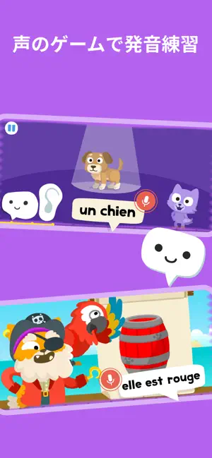 「Learn French」は就学前のお子様から利用でき、インタラクティブなゲームやアクティビティを通して、子どもたちが生まれながらに持つ「学ぶこと」への意欲を高めます。