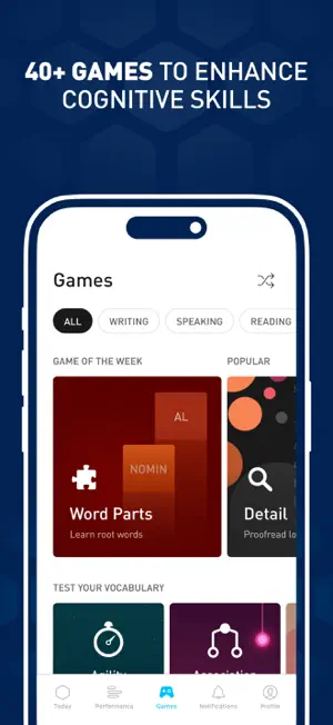 The more you train with Elevate, the more you’ll improve critical cognitive skills that are proven to boost productivity, earning power, and self-confidence. 90%+ report improved vocabulary, math skills, and overall mental sharpness when they frequently use Elevate.