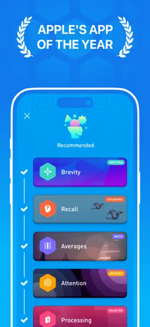 Elevate is a brain training program designed to improve your mind’s focus, memory, speaking abilities, processing speed, math skills, and more. Each person is provided with a personalized training program that adjusts over time to maximize results.