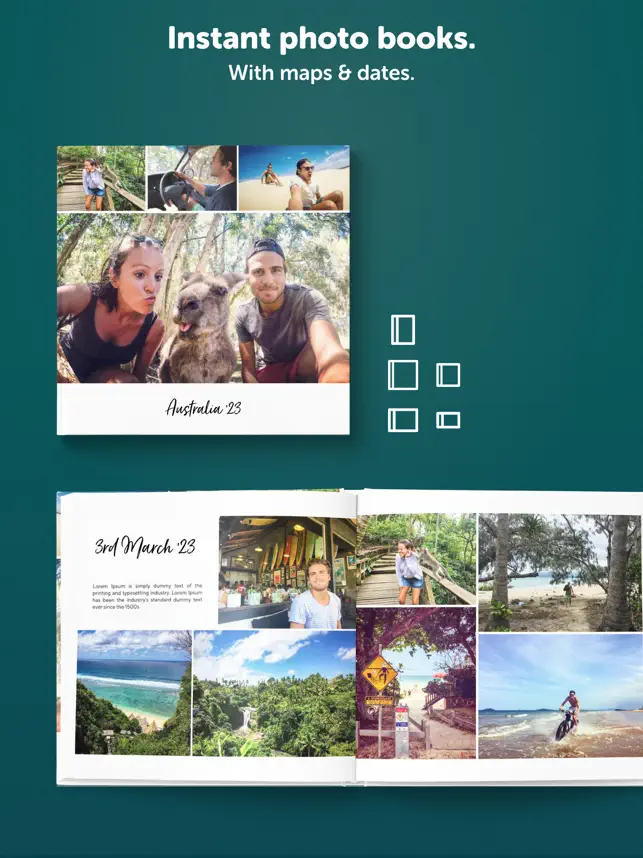 ▸ あなたの旅の冒険を写真、テキスト、マップ、スタンプ、天候、フライトなど盛りだくさんの内容の美しいストーリーに変身させることができます。