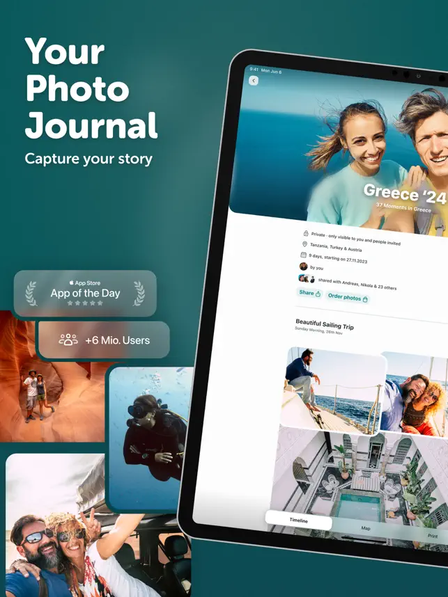 Journiは、写真、メモ、マップなどを使ってあなたの生活を美しいタイムラインとして記録できる一番簡単な方法です。タイムラインを瞬時にフォトブックとして印刷注文でき、写真の非表示設定も簡単にできます!オフラインでも使用可能で、お使いのすべてのデバイス間でタイムラインを同時に作成したり、同期化することができます!写真をもっと活用して、あなたの人生のすべてのモーメントをJourniで残しましょう!無料です。
