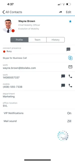 BlackBerry Workはカスタマイズされたビジネスエクスペリエンスを提供します。Eメールに同僚の写真を表示できます。どこで仕事をしていても、Eメール、カレンダーイベント、連絡先カードにオンラインの空き状況を表示してチャットできます。これはBlackBerry Workだけの機能です。起動ツールを使用してビジネスアプリ間をすばやく移動できます。クイックアクションボタンを使用して、電子メールの作成、連絡先の追加、カレンダーイベントのスケジュールなどの作業を簡単に切り替えることができます。じゃまになる位置情報機能がなく、個人のプライバシーが常に保護されます。