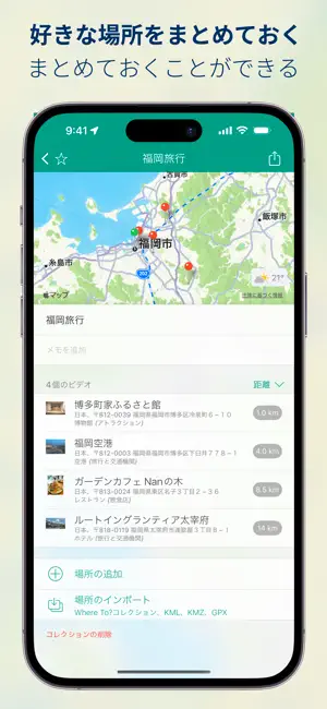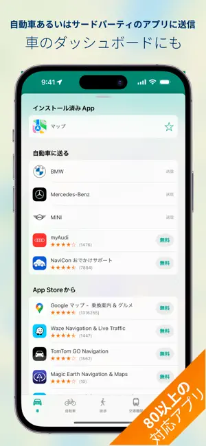 近所のガイドブックみたいに Where To?はあなたのポケットに入る地域ガイドのようです。夕食のメニューや写真、ビデオ、仕事やさまざまことを提供します。あなたが行うことは選ぶだけです。すると、予約や食事の注文、ホームページの閲覧ができます。 レートと評価 食事はおいしかったですか? サービスは良かったでしょうか? みんなに知らせてあげましょう! Where To?はさまざまなサードパーティプラットフォームからレーティングやレビューを集めています。 好きなものを集める あなたの好きな場所を保存しておき、コレクションとして整理できます。コレクションはKMLやKMZ、GPXからインポートできます。場所やコレクションはあなたの友人と共有できます。 経路の取得 組み込みの経路探索やあるいはApp Storeで得られる80以上のアプリケーションを使っての経路探索により自動車やバイク、徒歩、公共交通機関での経路が得られて、Where To? はその情報をを元にあなたが行きたい場所へ行く方法を示します。 自動車との連動 キーを差し込んで、カーナビで行き先までの案内をしましょう。アウディやBMW、メルセデスベンツ、Mini、ポルシェのオンボードナビゲーションシステムへ行き先の情報を送信することがでできます。 お気に入りのお店や場所を腕の中で Apple Watchを使って、あなたのお気に入りのお店や場所を探し出し、道順を教えます。そして説明や利用できる時間帯、レビューもWhere To?は表示します。 ウィジェット さまざまな形式やサイズのウィジェットを使用して、ホーム画面またはロック画面から近くの場所を参照します。 Siriに追加 Siriをショートカットにより拡張して、Where To?を使った近所の検索をできるようにします。ショートカットアプリを使ってワークフローを作ることもできます。 場所の通知 ある場所に到着あるいは出発した時に通知を出すことができます。クリーニング店でスーツを受け取るのを忘れることはなくなるでしょう。 ¿Habla español?, Parlez-vous français? あなたがメキシコに行ったとして、スペイン語で「床屋」をどう言えばいいか知っていますか? Where To?は11の言語で検索して全てのカテゴリをその場の言語に即座に翻訳します。 iMessageに対応したWhere To? Where To? はiMessageに対応し、友達と会話しながら場所を検索してその結果を伝えることができます。ランチをみんなで食べにいく時、みんなで飲みに行く時、とっておきのお店やホテルを教えてあげたい時、Messageアプリケーションから切り替える必要はありません。 利用者からの評価 あっと言う間にWere To?アプリはあなたが探しているさまざまな場所へ行く方法を示してくれる。 - Natalie Avon, CNN iPhoneで使える場所を探して指し示すことに使えるすばらしいアプリだ。 - John Gruber, Daring Fireball これは明らかに近所の検索結果をドラマチックに拡張してくれる。 - Mel Martin, Engadget “continues a remarkable tradition as one of the best ways to find places around town” (4.5 of 5 stars) - J.R. Bookwalter, Mac|Life 高くない、心地よいユーザインタフェース、そして便利。 - Eric Schwarz, SchwarzTech.us ソーシャル・メディア ニュースや告知を流します - Facebook: https://fb.com/wheretoapp - Mastodon: https://urbanists.social/@whereto - X: @futuretap