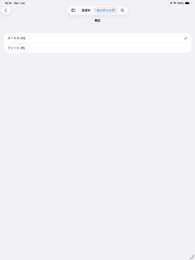 正確な測定を行うには、GPS信号を受信できる開けた場所に移動してください。アプリがGPS信号を受信すると、画面に現在の高度が表示されます。設定からメートルまたはフィートを選択できます。