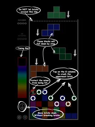 - 8列のいずれかをタップして、鉱夫は地面に最も高いレンガを破る移動します。
