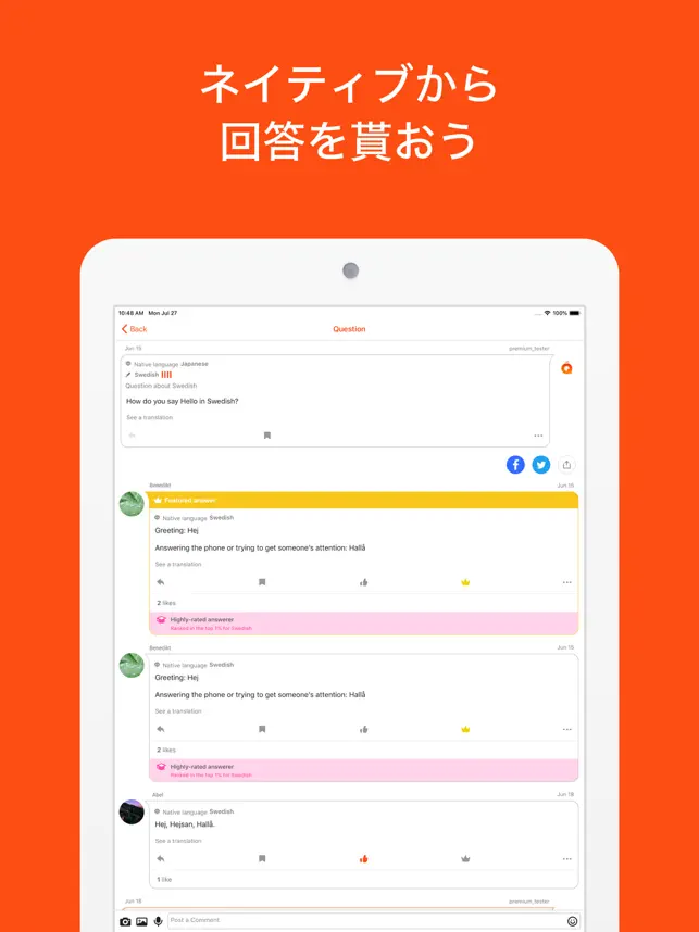 デベロッパの回答 、 HiNativeのご利用誠にありがとうございます。さらにより良いサービスをご提供できるよう努力して参りますので、今後も引き続きどうぞよろしくお願いいたします。