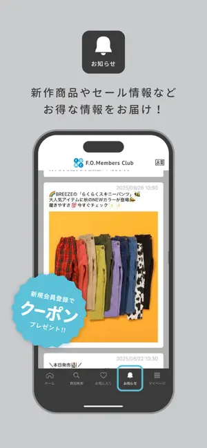 子ども服ショップ「BREEZE(ブリーズ)」や「apres les cours(アプレレクール)」を全国展開するF・O・インターナショナルの公式アプリです。