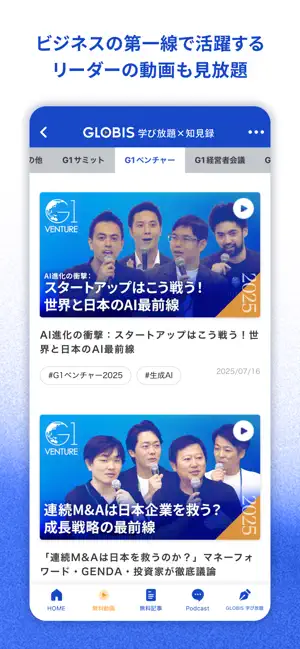 第一線で活躍するビジネスパーソンの知見を、記事や動画で気軽にインプットできるのが特長。