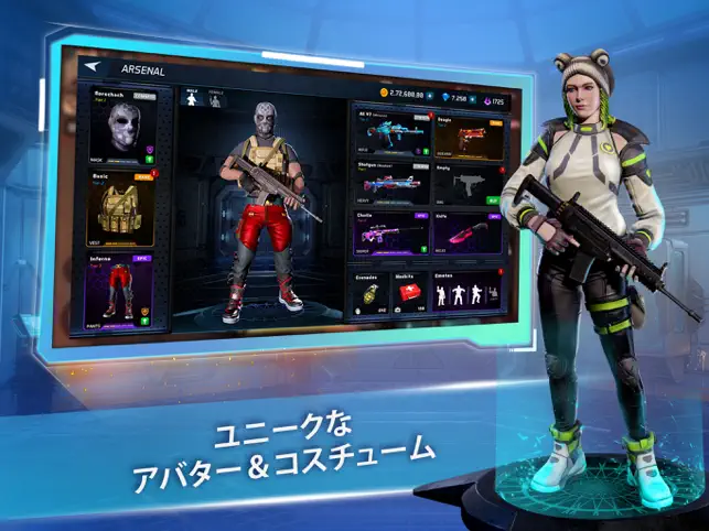 ► 装備をカスタマイズ: さまざまな装備、マスク、防具でキャラクターをカスタマイズ。自分のスタイルに合うゲームのロードアウトを使用。
