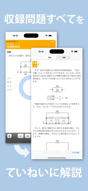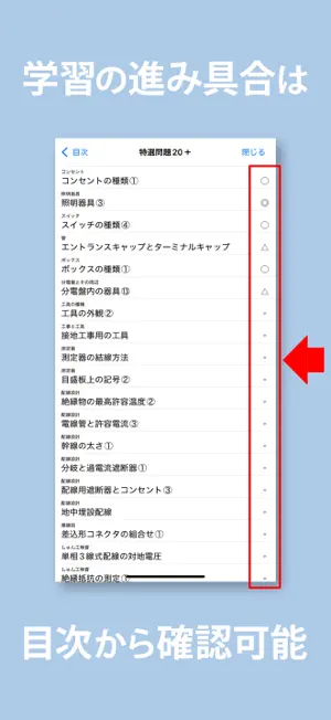 さらに、完全版へアップグレードすると、問題数が約230問に増加し、ランダム出題機能も使えるようになります。追加される問題は過去の出題から頻出論点の良問が厳選されているので、合格に必要な知識を効率よく身に付けられます。適切に章分けもされているため、分野ごとの集中的な学習も可能です。ランダム出題機能では過去に間違った問題や未回答の問題が優先的に出題されるので、受験直前の総仕上げや知識の維持に効果的です。まさに第2種電気工事士筆記試験向け問題集アプリの決定版と言えるでしょう。