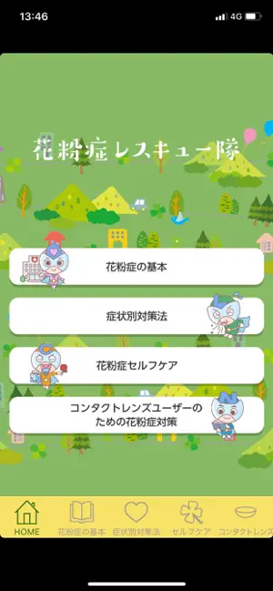 花粉症に関する情報提供専用のウェブサイト「花粉症レスキュー隊 (http://kafun-rescue.jp/)」のコンテンツをアプリ内ブラウザで確認できます。