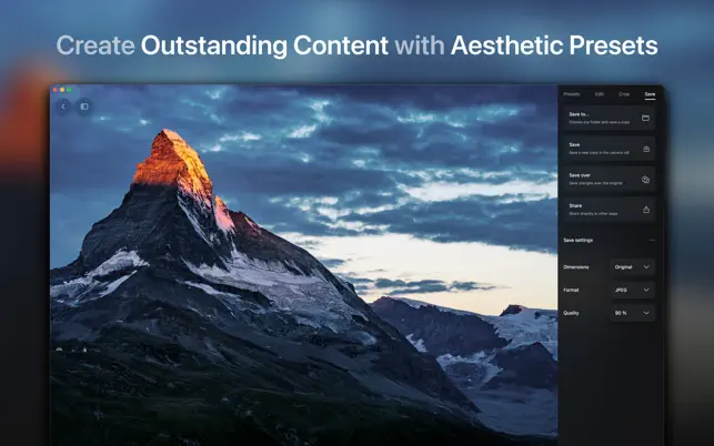 • Capable of editing both photos and videos. • Ultralight is easy to use and understand. • Full screen editing. • High quality filters and customisable filter presets. • Create, save and share your own custom presets.