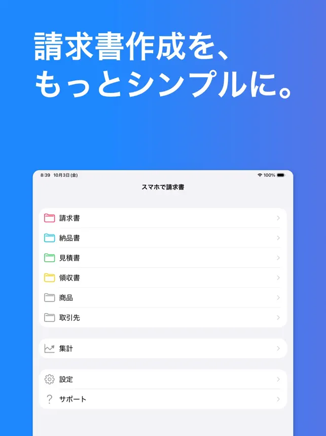 スマホで簡単に請求書が作れるアプリです。